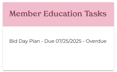 Ex. If a Bid Day is scheduled for September 3 and the Bid Day Plan task is submitted with September 1 as the Event Date, the Bid Day Plan task will appear overdue on the Dashboard because the event dates on both the calendar and the form do not match.
